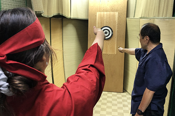 初心者の方には、手裏剣の持ち方や投げ方のフォームも指導してくれます。