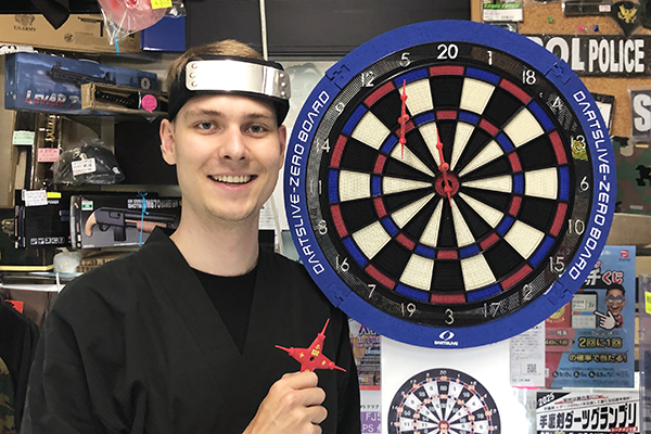 ダーツボードを使用してダーツを楽しむように気軽に手裏剣打ちが体験できる手裏剣ダーツも店内で体験できます。
